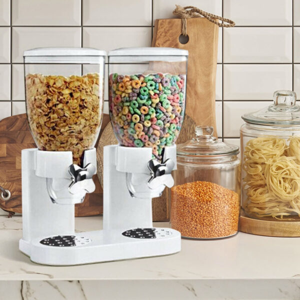 Rezervor dublu, dozator de cereale cu două containere