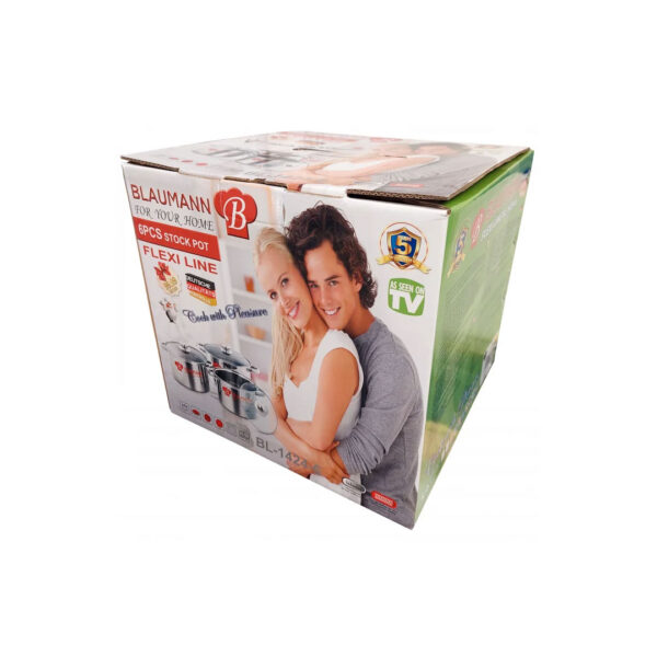Material: Inox , sticla termorezistenta Numar bucati per set : 3 oale cu 3 capace Sursa de caldura: Gaz, Electric, Halogen Colectia : BLAUMANN FOR YOUR HOME