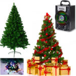 Brad artificial de Craciun, 1.8m complet impodobit + Suport + Instalatie leduri + Super Boxa CADOU, cu Joc de lumini, Bluetooth, Card, USB, Radio FM!