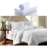 Lenjerie Damasc 4 piese, bumbac Policoton, Oferta Luxury, tip Hotelier + Cadou 1 Prosop de baie, 140x90cm, 420g, pufos, alb sau alte culori!