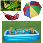 Piscina gonflabila JRH, 2 inele Family Pool, dreptunghiulara, 201x150x51cm + Hamac Columbian Din In Multicolor 80×200 cm+ Cadou Umbrela Cu Protectie Uv!